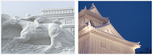 さっぽろ雪まつりは、北海道札幌市で行われる雪と氷の祭典です。毎年2月5日~11日にかけて、大通公園を中心とした複数の会場に巨大な雪像や氷像が建立されます。始まりは1950年、不要な雪の置き場となっていた大通公園に市内の中学・高校の生徒が計6基の雪像を作り上げ、話題となりました。その後正式な祭事とされたさっぽろ雪まつりは現在、世界三大雪まつりの一つに数えられています。近年は多くの地元企業や市民、陸上自衛隊、海外からのチーム等が参加し、毎年約200基の雪像・氷像がお披露目されます。