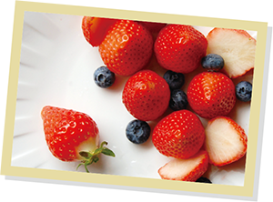 アントシアニンを多く含む代表的な食品は、ブルーベリー、ブラックベリー、紫ぶどう(皮)、アサイー、カシス、ナス、赤キャベツ、たまねぎ、黒豆など。5月に旬を迎えるイチゴにも、アントシアニンが豊富です。濃い色をした皮の部分に含まれていることが多いので、皮ごと食べられる調理法やジャムなどを活用して上手に取り入れましょう。