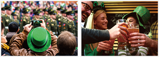 セント・パトリックス・デーは、アイルランドにおける最大級のお祭りです。この祭りはアイルランドの守護聖人である聖パトリックを讃えるためのもので、毎年3月17日に行われます。聖パトリックは5世紀頃のアイルランドにキリスト教を広めた人物であり、シャムロック(三つ葉のクローバー)を用いて三位一体を説明したとされます。当日、街はシンボルカラーの緑に染まり、人々も緑の衣装に身を包んで外出します。飲食店では祭りにちなんだ料理やビールが提供され、各地でパレードや音楽イベントが開催されます。